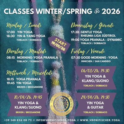 26 Termine/lezioni von 09/10/25 bis 07/05/26 (02/04/26 entfällt/sospeso)